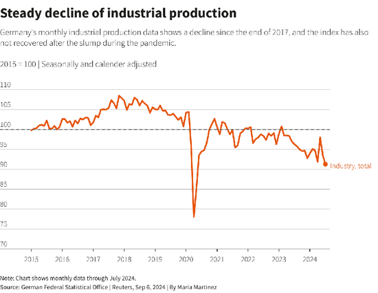长期以来,德国经济的成功依赖一个简单的全球分工模式: 以低廉价格进口第三世界的原材料和零部件,借助德国的工程实力与俄罗斯的廉价能源,将其转化为高附加值的“德国制造”。然而,2022年以来,能源危机叠加德国政府强制推行的“气候中性经济”转型,导致电力、天然气、石油等能源价格飙升,钢材生产价格水涨船高,全球竞争力大幅减弱。